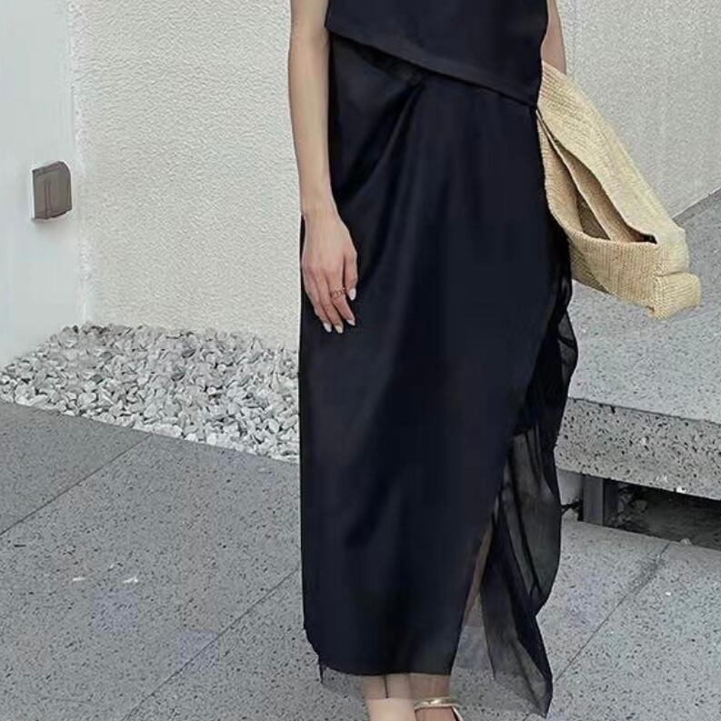 裾からメッシュチュールを覗かせることで印象を与え大人の抜け感を演出◎