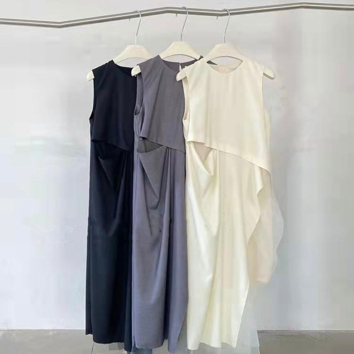 メッシュチュールをレイヤードしたようなデザインが目を惹くワンピース。