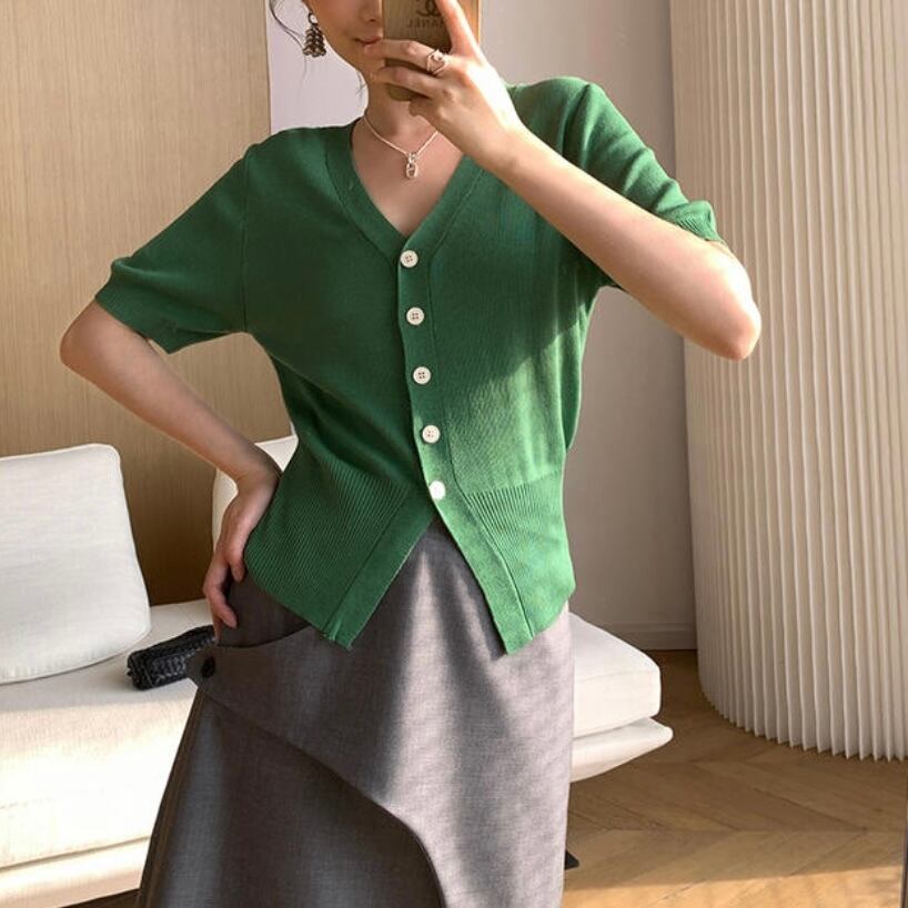 着回しの効くVネックが、様々なコーディネートに馴染み易く、大人のカジュアルスタイルにおすすめ♪