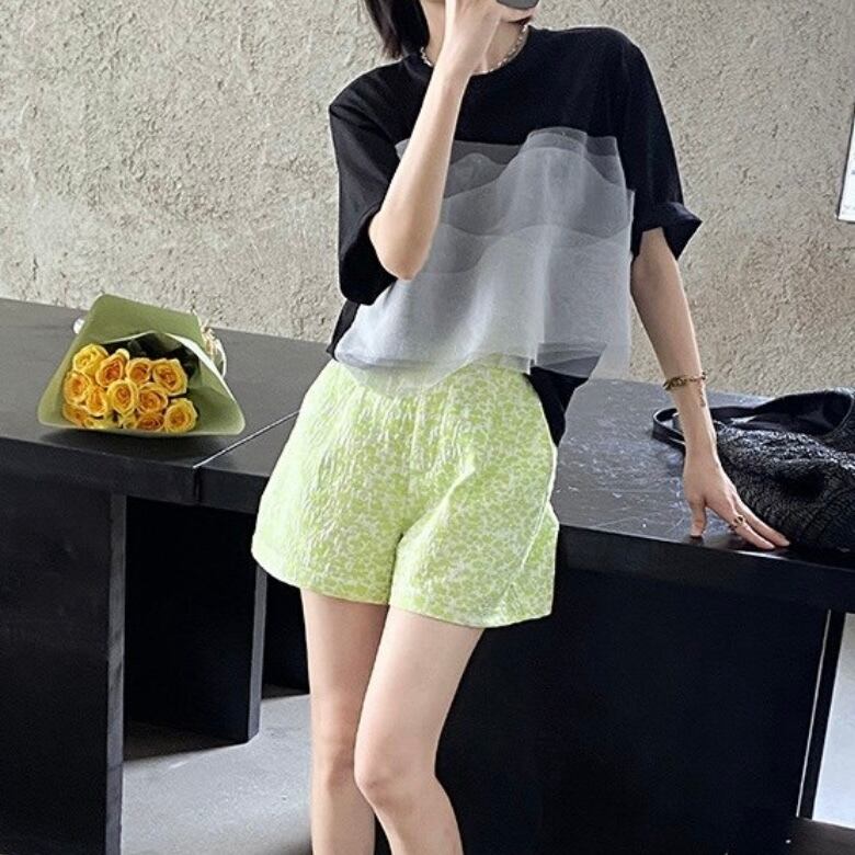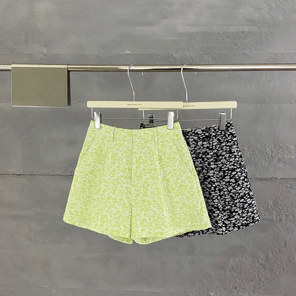 小さな花を全体にジャガード織でデザインした花柄ショートパンツ。