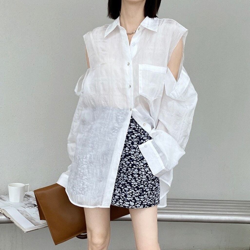綺麗目なブラウスはもちろん、Tシャツ合わせでエフォートレスなスタイルがオススメ◎