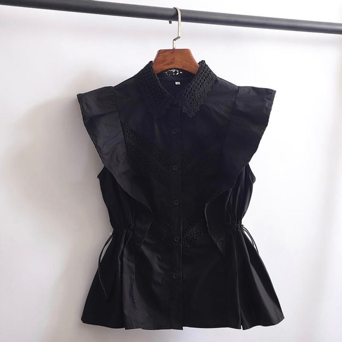 肩のフリルがアクセントになり、華奢魅せ効果も◎