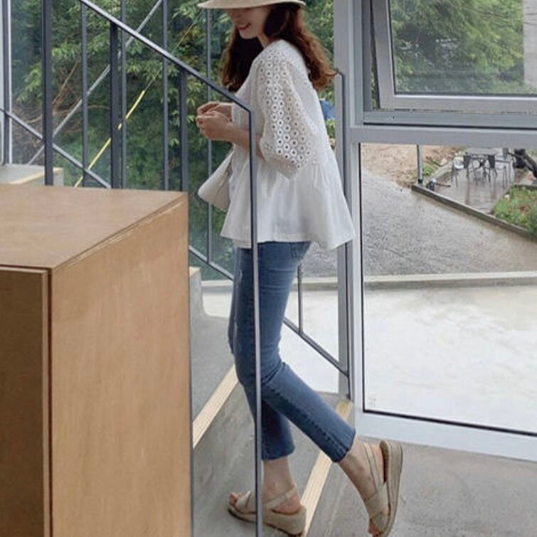 レトロチックなカットワーク刺繍が大人かわいい着こなしを叶える一枚です。
