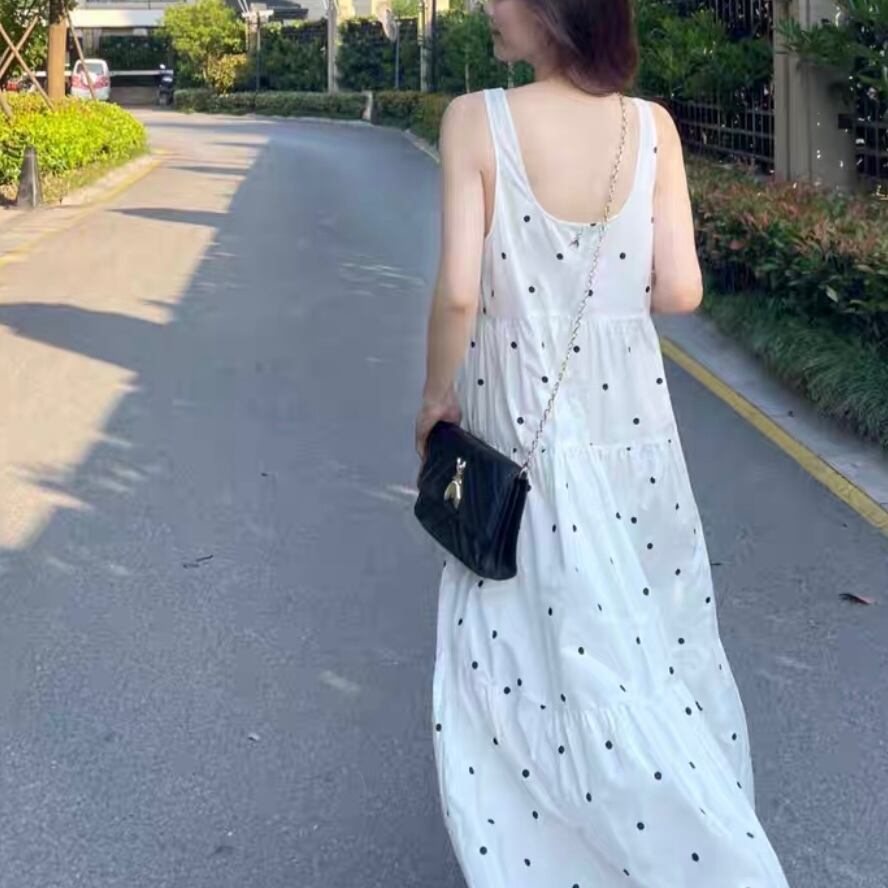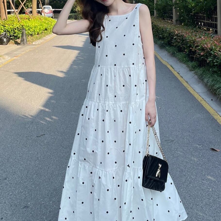 ランダムドットが大人可愛い、ロング丈ティアードワンピース。