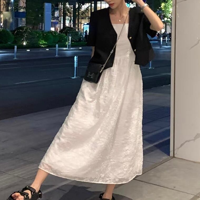 繊細でロマンチックなムード漂う刺しゅうレースのキャミワンピース。