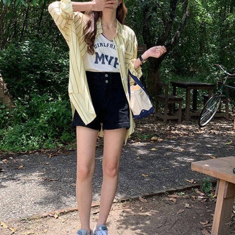 サラっと羽織れる薄手のシャツとタンクトップのセットアイテム。