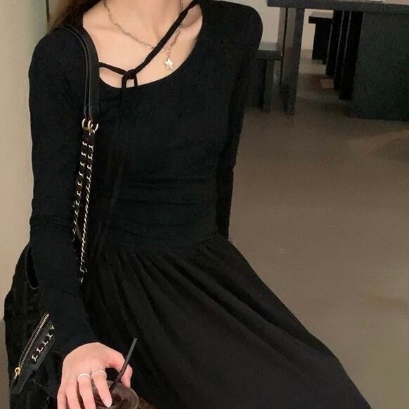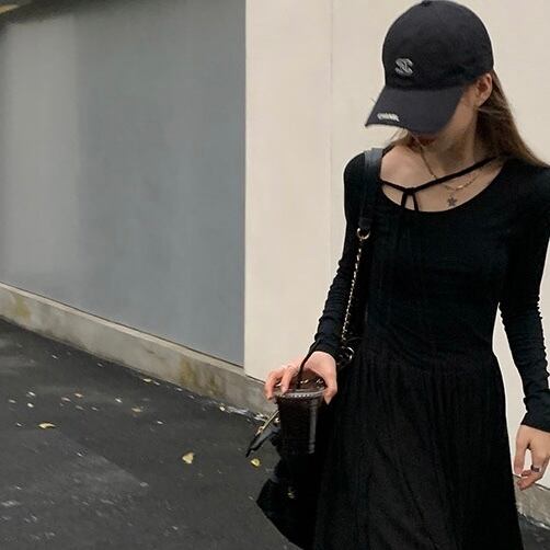 広く開いたネックラインが程よい抜け感を感じさせるワンピース。
